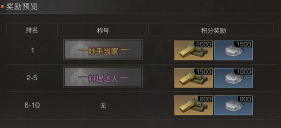 排名在2-5的玩家可以领取“料理达人”的称号以及金条*1500和技能点*1000
