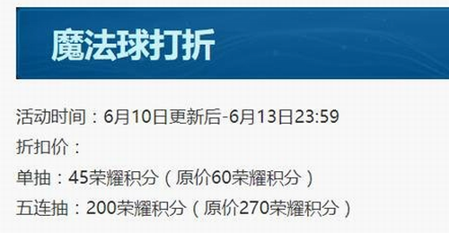 3、活动有效期是:6月10日-6月13日,四天时间五连抽只需要200的荣耀积分,有可能会抽到;