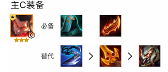 腕豪鬼刀,水银必备,鬼刀叠加攻速,S7前排控制太多,前排主C必备水银。剩余杀人剑优先,其次泰坦,巨杀等所有物理装基本都可以给,根据对手玩法,进行微调。