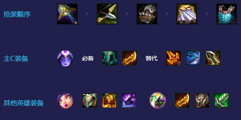 猛兽之巢看到必拿,忏悔起到很好的控制效果、换形师之心可以不要6玉龙开出6换形,其余通用类战斗海克斯均可
