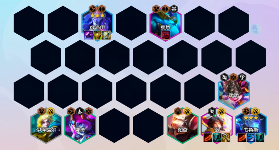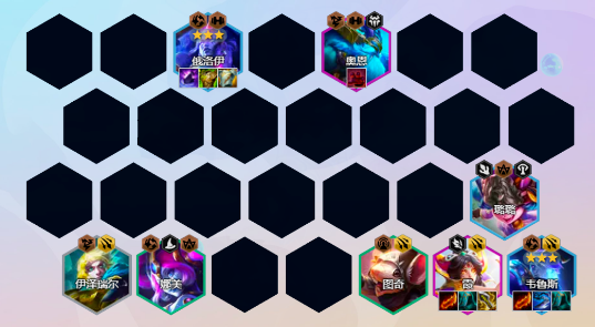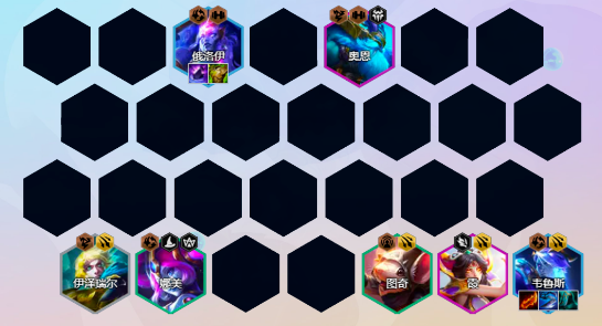 阵容组成:俄洛伊、奥恩、韦鲁斯、露露、霞、图奇、娜美/巴德、艾希