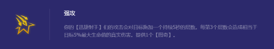 强攻:这是射手的最强巨龙圣坛之弈,对目标加一个持续5秒的层数,每第3个层数目标受到5%最大HP真伤,尤其是射手们的攻速足够快,对面还没放出技能怪就死完了,来了必选。