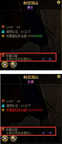 在地下城入场界面可以查看到该难度下掉落的装备上的装备属性等级。