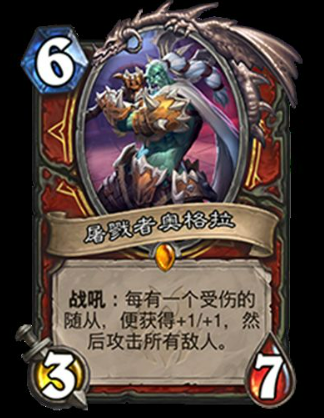 战吼:每有一个受伤的随从,便获得+1/+1,然后攻击所有敌人。