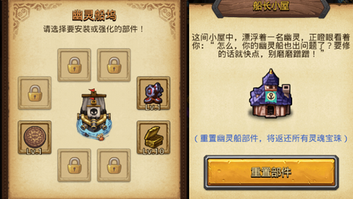 要点: 最难的就是全部部件强化满酒馆全买 水手全翻 有洞全清反复大地刷幽魂宝珠就对了部件先升罗盘,然后弹药箱,之后随意可以通过重置罗盘来重复获取宝箱