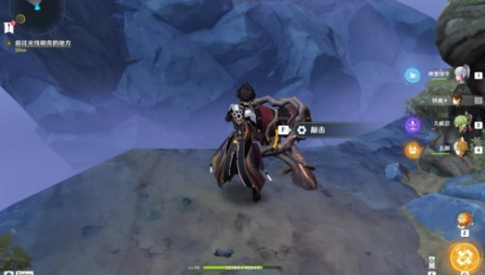 11、这时我们可以前往山顶的传送锚点位置;如果开通了传送锚点,可以直接传送过去;如果没开通可以前往大门边上的树藤爬上去。
