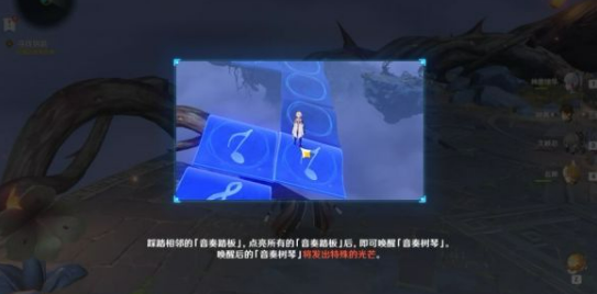 17、然后在弹奏树琴,会发现音符的传送,音符传送到【阻挡水脉的石头】上后,石头会被破坏,这时水脉可以流动,如下图所示。