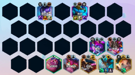 后期阵容:5-2回合升9人口,升9之后一定要保证我们有20+或者30+的金币,不然我们就算搜到了敖兴钱不够就尴尬了,毕竟2星敖兴30金币,搜到敖兴后可以下瑞兹上敖兴,瑞兹装备给敖兴,奥恩换赛芬,最后补上佐伊即可,大后期提升其他5费卡星级即可吃鸡。