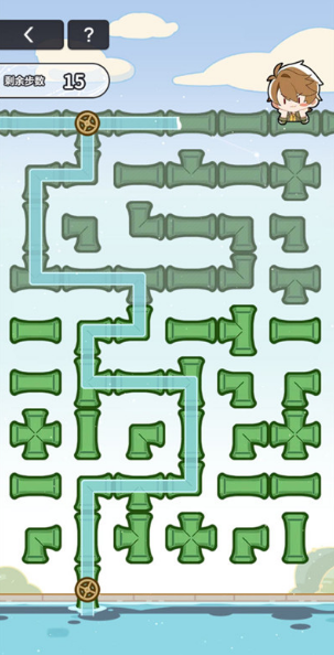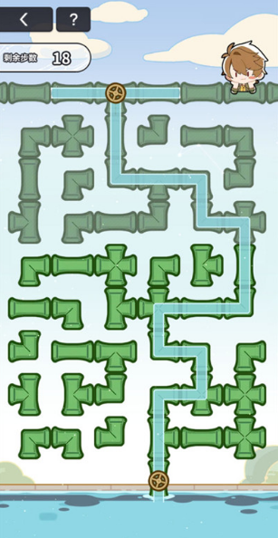 在指定步数内,顺时针旋转水管,使水流从入水口顺利流往出水口即可通关成功。