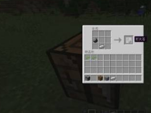 3、有铁锭和燧石,就可以用工作台制作打火石了。