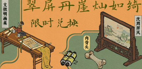 消耗青金石可在【翠屏丹崖灿如绮】活动兑换页获得「文徵明画桌」、「肉骨头」。