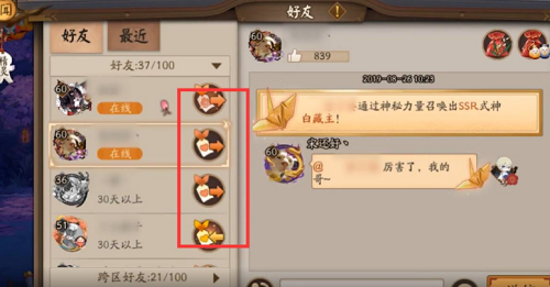 1、阴阳师赠送红心可以提升好友之间友情点。