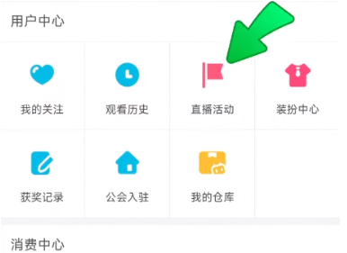 2、在直播中心栏目中,找到用户中心下的直播活动。