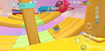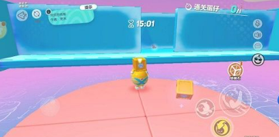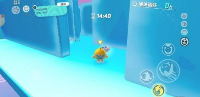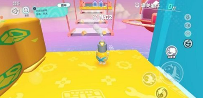 紧接着就到了本关卡的重头戏:通往迷宫的困难道路。稍有基础的新手玩家也许会利用跳跃加飞扑的动作,但令人惊讶的是这个方法在此障碍面前无法使用!仿佛一拳打在了棉花上的无助。不过,细心的玩家会发现跳出的垫脚石工具。敲黑板啦~垫脚石的正确用法!玩家拿起垫脚石,先按跳跃键,当蛋仔跳出一段距离,玩家要快速按垫脚石按键,这时最重要的是操作连贯,不能乱了手脚哦!