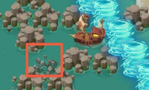 注意上图这个位置,有个小礁石是可以直接撞破的,通过这里去地图左上角。