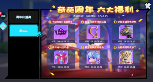 不仅有周年称号登录即送,还有活动限定玩具,全英雄限免等多种福利等待战斗家们的青睐!