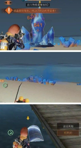 3、然后跟随地图的指引找到三处晶石,破坏晶石将会吸引到感染者来袭,我们需要全部清理掉。