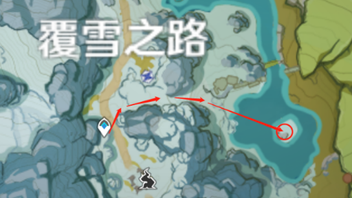 1、来到覆雪之路传送点,一路顺着箭头走。