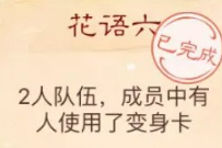 2、其中一个成员使用了变身卡,点缘之花,就能完成任务。