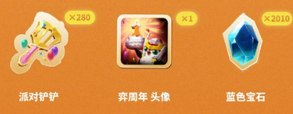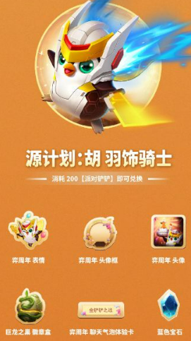 (2)首次选择后即可获得[派对铲铲] *50, [派对铲铲]可以在弈周年派对活动中使用,兑换[源计划:胡羽饰骑士]等奖励