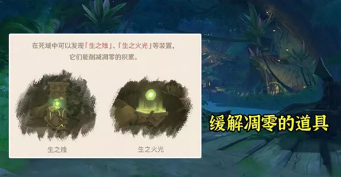 3、如果玩家长期处在这里,会不断的叠加层数,减少生命上线,累积到了10层就会直接判定死亡,但是玩家可以在死域中发现生之烛,生之火光等等的装置,然后就可以削弱凋零积累,等同于是雪山的火炉机制。