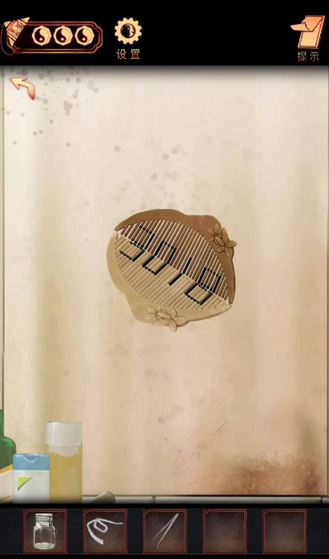 8、点击镜子,使用【木梳子】,得到密码提示【3018】。
