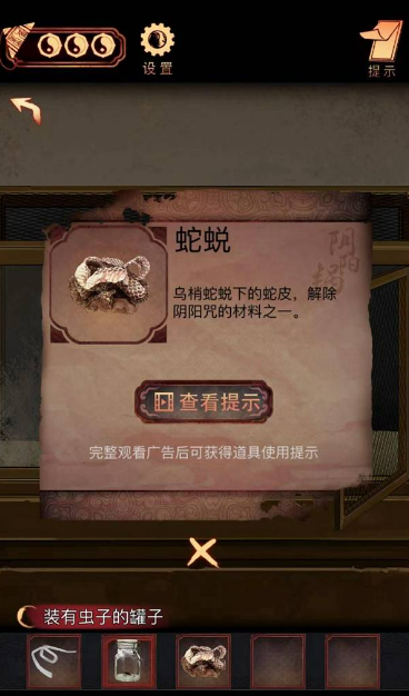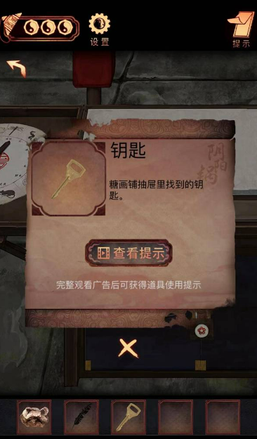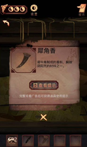 20、回到仓库内,将【阴阳玉(阳)】和【阴阳玉(阴)】放在抽屉上的机关内,打开抽屉获得道具【犀角香】,在一系列剧情之后,第四章通关。