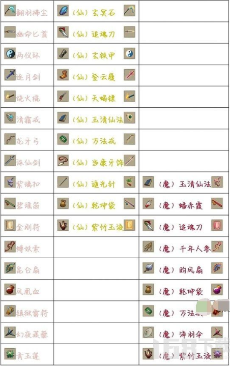 后期法宝推荐:凤凰血,两仪环,龙牙弓,幻夜蒺藜,逐月剑,震雷符。凤凰血合仙、龙牙弓合魔,这两个一个给回血阵,一个暴击阵,逐月剑和震雷符在打BOSS的时候本人觉得伤害挺可观。除两仪环,幻夜蒺藜外的法宝可优先合成。
