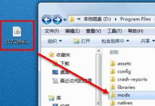 2、将Mod文件jar格式,如果是压缩包也不需要解压直接拖入游戏程序下的“mods”文件夹中。