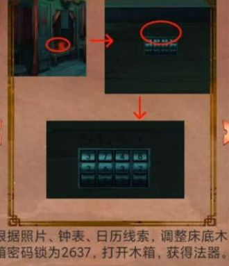 3:再然后我们需要根据照片,钟表,日历的线索知道床底木箱的密码是2637;