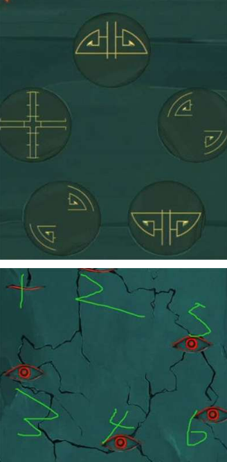 6:密码盒子你们摆放成下图的样子就好了,最后就是眼睛关闭顺序如图所示,然后第五章的所有需要解谜的就在这里了,不知道怎么通关的可以进行参考。