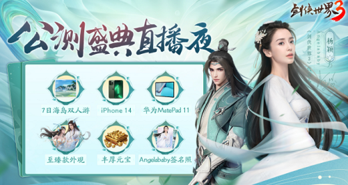 本次《剑侠世界3》携Angelababy共启公测之旅,盛典直播豪礼送不停。在众多豪礼之中,7日浪漫海岛双人游可谓赚足眼球。这一次诸位少侠不仅能够在游戏内畅玩新地图鼓浪屿,还能去往真实海岛,浪漫度假!当然还有iPhone14、华为mate11等电子大奖等待抽取。积极参与互动的少侠,还有机会获得Angelababy签名照等心动好礼!