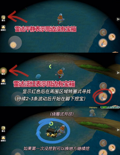 4、雷达频繁发出红色波动!表示宝箱就在附近!可以在脚下用铲子进行挖宝。