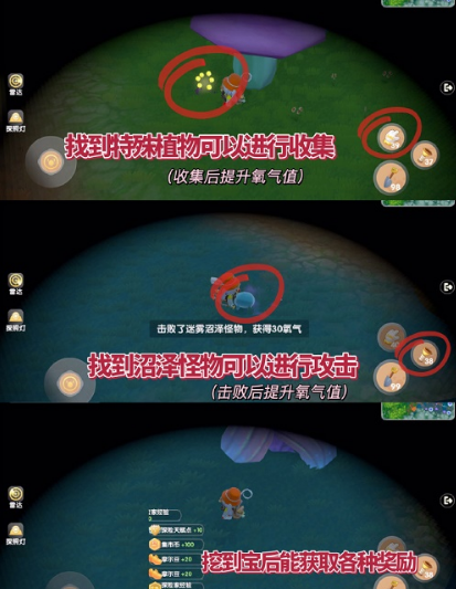 2、左上角氧气值是公用的!所以如果附近有小怪物或特殊植物~记得进行收取!提升氧气值。