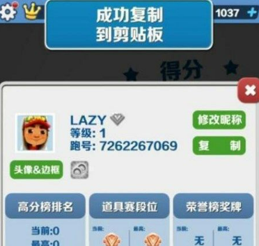 2、然后打开自己的地铁跑酷冰岛版本的游戏,先把自己的游戏跑号id复制了,游戏ID后面会有一个复制的按钮,直接点击复制就好了
