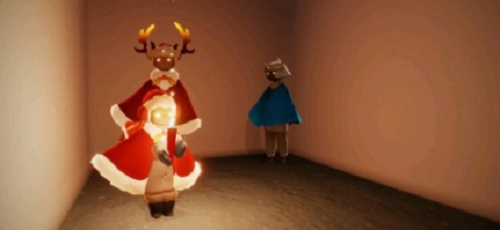 需要玩家有TGC斗篷才能进入,不过也可以直接卡进去,然后玩家可以在小蓝的旁边,然后看到这个有鹿角的先祖。