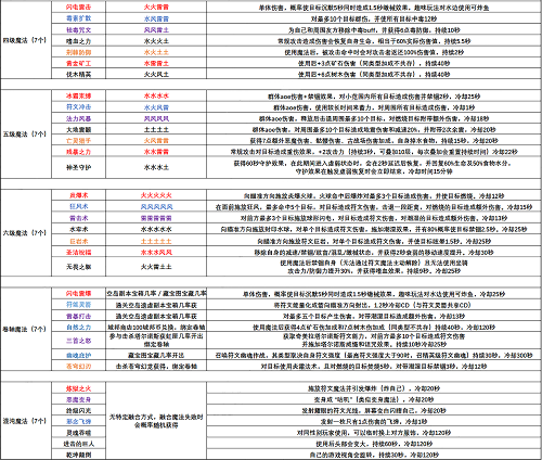 1、魔法技能大全2022如图表所示,大家可以根据自己的需要进行魔法融合,不同等级的魔法会有不同的魔法效果。