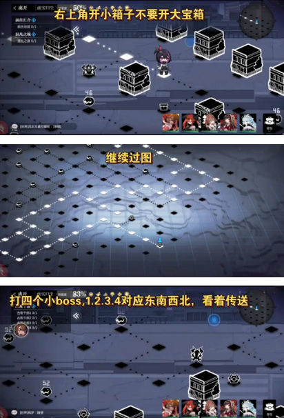 2、过图过图来到大图右上角,开小箱子不要开大宝箱。继续过图。四个区域打四个小BOSS,1234对应东南西北看着传送。