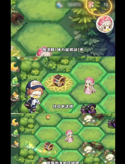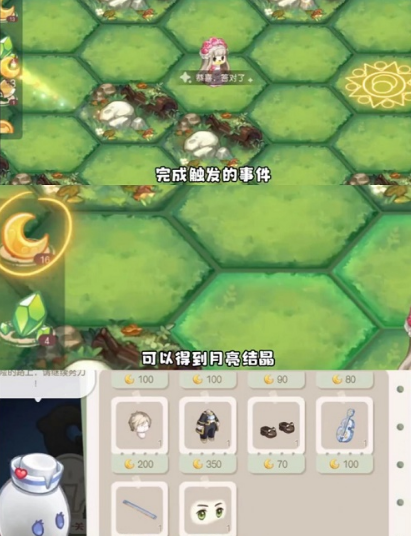 5、进入探险!每消耗1体力能移动1步,终点是魔法阵上有一个宝箱有多余的步数可以去探索周边的区域,获取更多月亮结晶(可兑换时装)。
