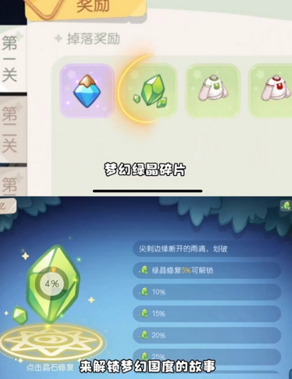 4、通过梦幻绿晶碎片解锁梦幻国度的故事。