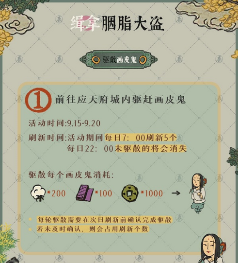 江南百景图缉拿胭脂大盗活动怎么玩?拿胭脂大盗活动如何获取奖励?江南百景图缉拿胭脂大盗活动上线了,玩法和上次的桃妖类似,每天刷新5个画皮鬼,玩家驱赶过后一定要记得点一下完成,下面小编就给大家详细的介绍一个这个活动的玩法和奖励,一起来看看吧。
