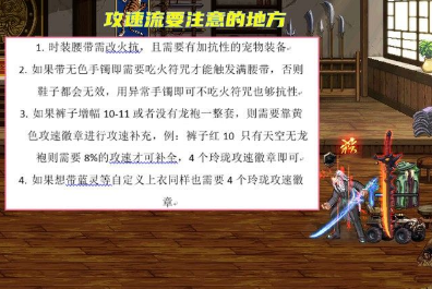 【一】攻速流派搭配。围绕“赛跑音速长靴”搭配,在9.22版本更新后,触发140%以上的攻速条件,也变得比较简单,宠物装备、快捷栏纹章、辟邪玉都能增加。当裤子增幅10-11,或者没有神器装扮一整套,则需要靠徽章进行填充。