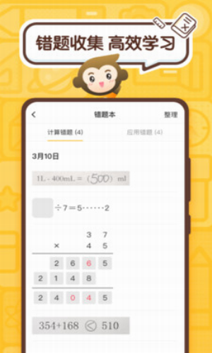 错题收集,针对练习:自动收集错题,让孩子更有针对性的练习,快速突破数学难点、易错点;