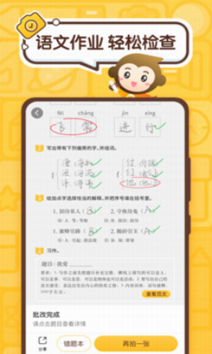 拍照,秒判对错:只需对数学作业拍照,一秒就能帮您判断对错,并进行针对性的分析辅导,让孩子“知错能改”。