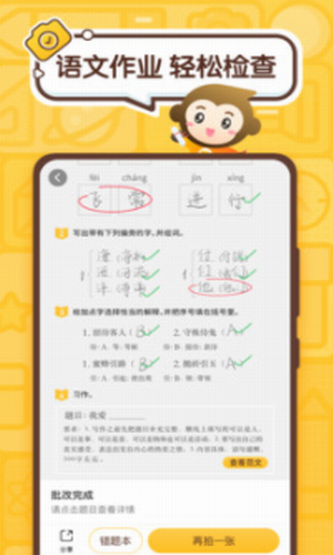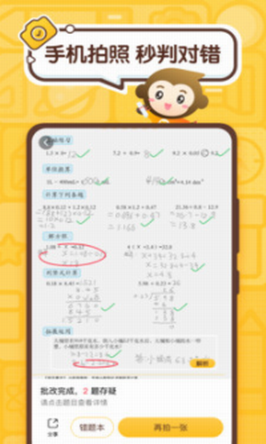 2、拍照检查口算作业,1秒完成批改,错题一目了然。