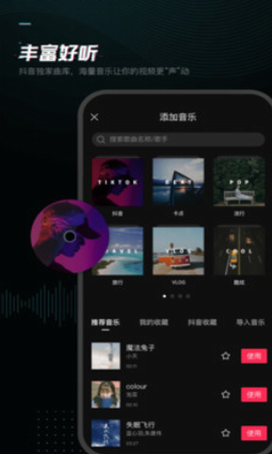 剪映app下载是一款堪称目前最强大的视频剪辑app,该软件满足你的各种视频制作需求,强大的编辑功能,超多的素材内容,直接将强大的编辑器呈现给你,丰富的贴纸文本,独家背景音乐曲库,丰富素材可以免费获取使用,一键添加背景音乐,视频更有质感,帮你轻松剪出美好生活。带有全面的剪辑功能,支持变速,多样滤镜效果,该软件具有界面简洁,操作方便,功能强大等特点,可以有效帮助用户轻松制作出高逼格的短视频