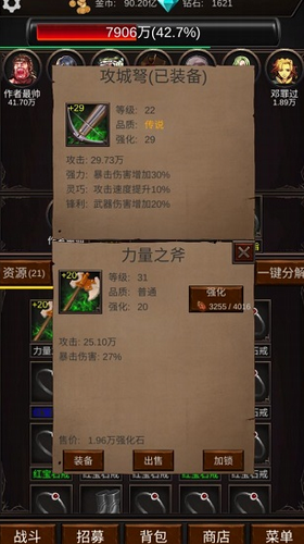 3、这是一款不需花费太多时间的挂机游戏,丰富的佣兵技能,随机生成的装备数值。