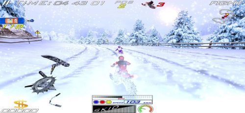 2.玩家模拟驾驶滑雪摩托,在不同的赛道上狂飙,和对手们决一高下