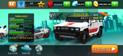 3.赚取更多的金币去解锁你的赛车,秀出你疯狂的赛车技术
