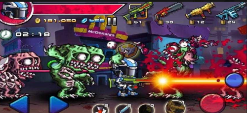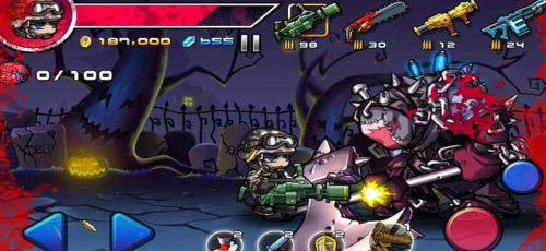 1.拿起你的武器,争取生存。你会赚金币和钻石杀死僵尸和生存任务
